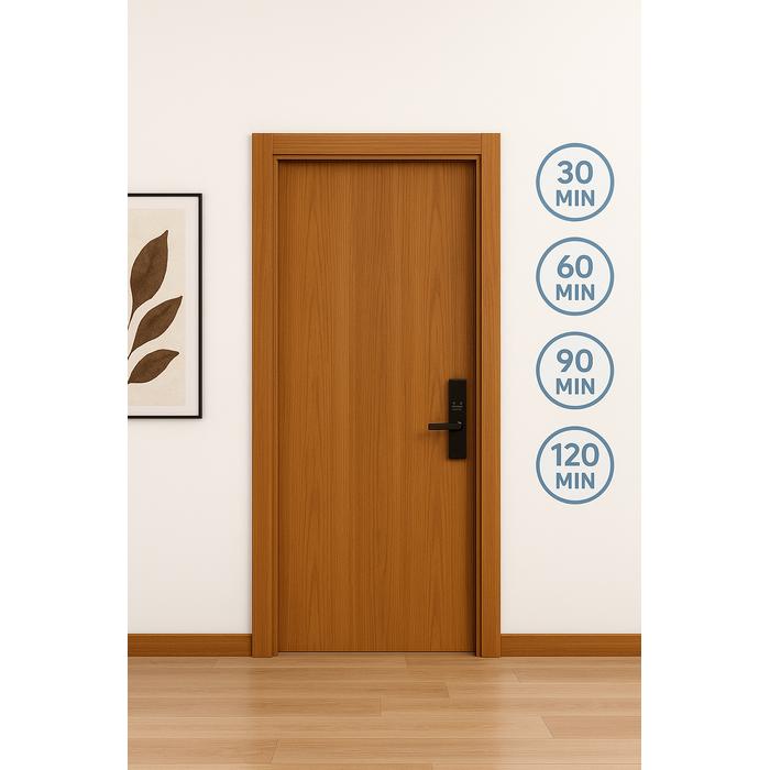 Yangına karşı 30 dakika dayanım süresine sahip bu otel oda kapısı, kısa süreli acil durumlara karşı etkili bir çözüm sunar. Binalarda yangın güvenliği yönetmeliklerine uygun olarak üretilmiştir.